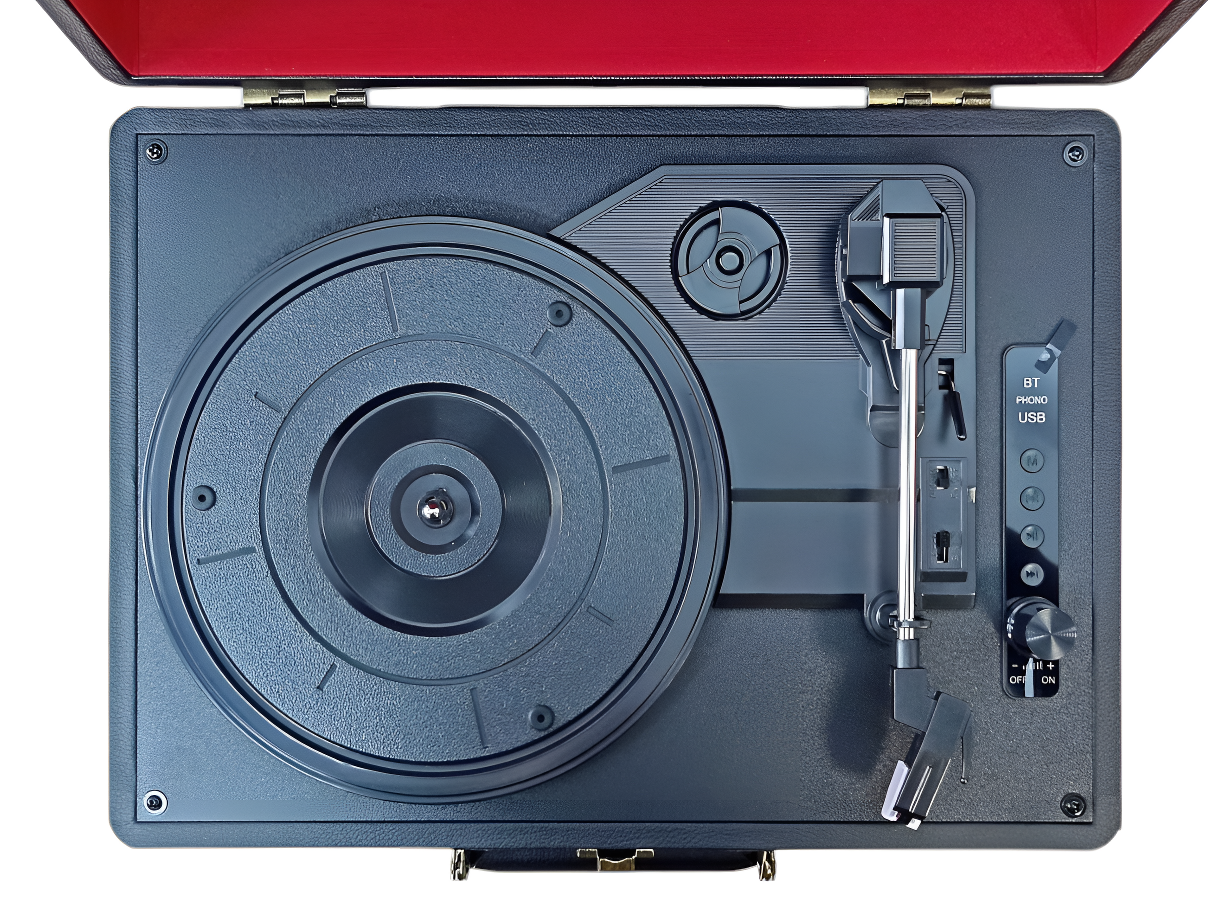 Проигрыватель виниловых дисков с автостопом поддерживает 3 скорости (33, 45 и 78 об/мин)