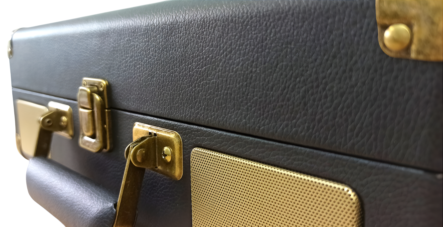 Корпус прибора выполнен из мдф в форме чемодана и обтянут качественной экокожей черного цвета