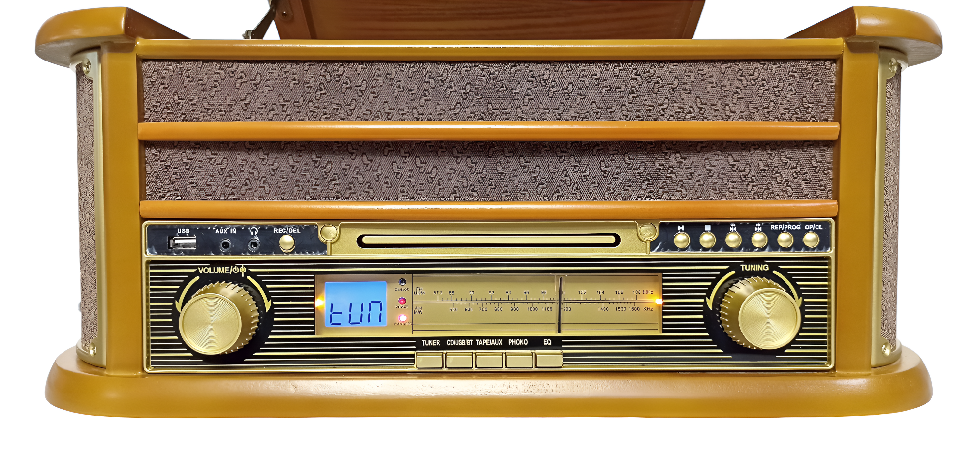 Модель MT402AM представляет собой многофункциональный музыкальный центр в ретростиле 60–70-х годов.
