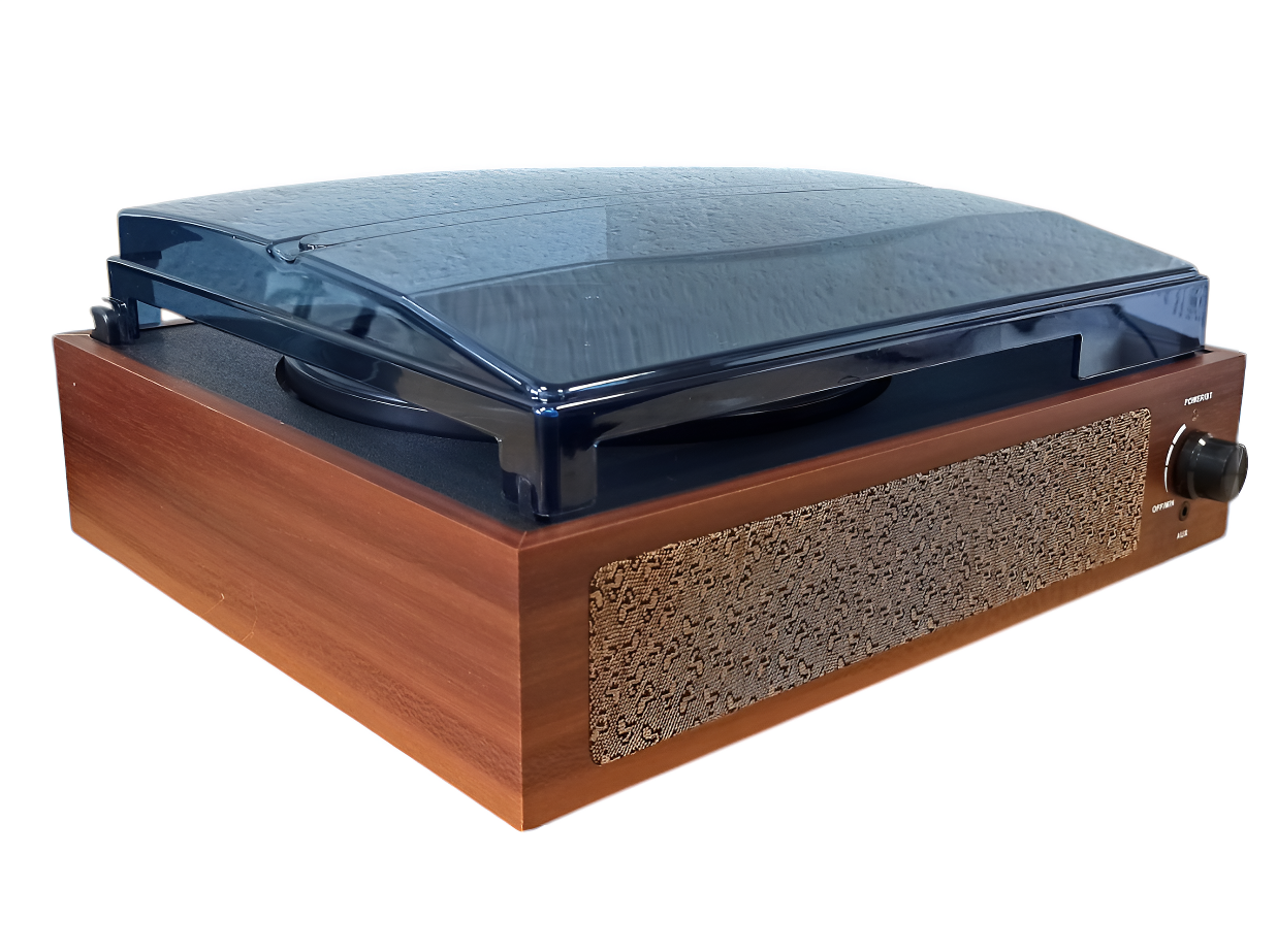 Проигрыватель виниловых дисков с автостопом поддерживает 3 скорости (33, 45 и 78 об/мин).