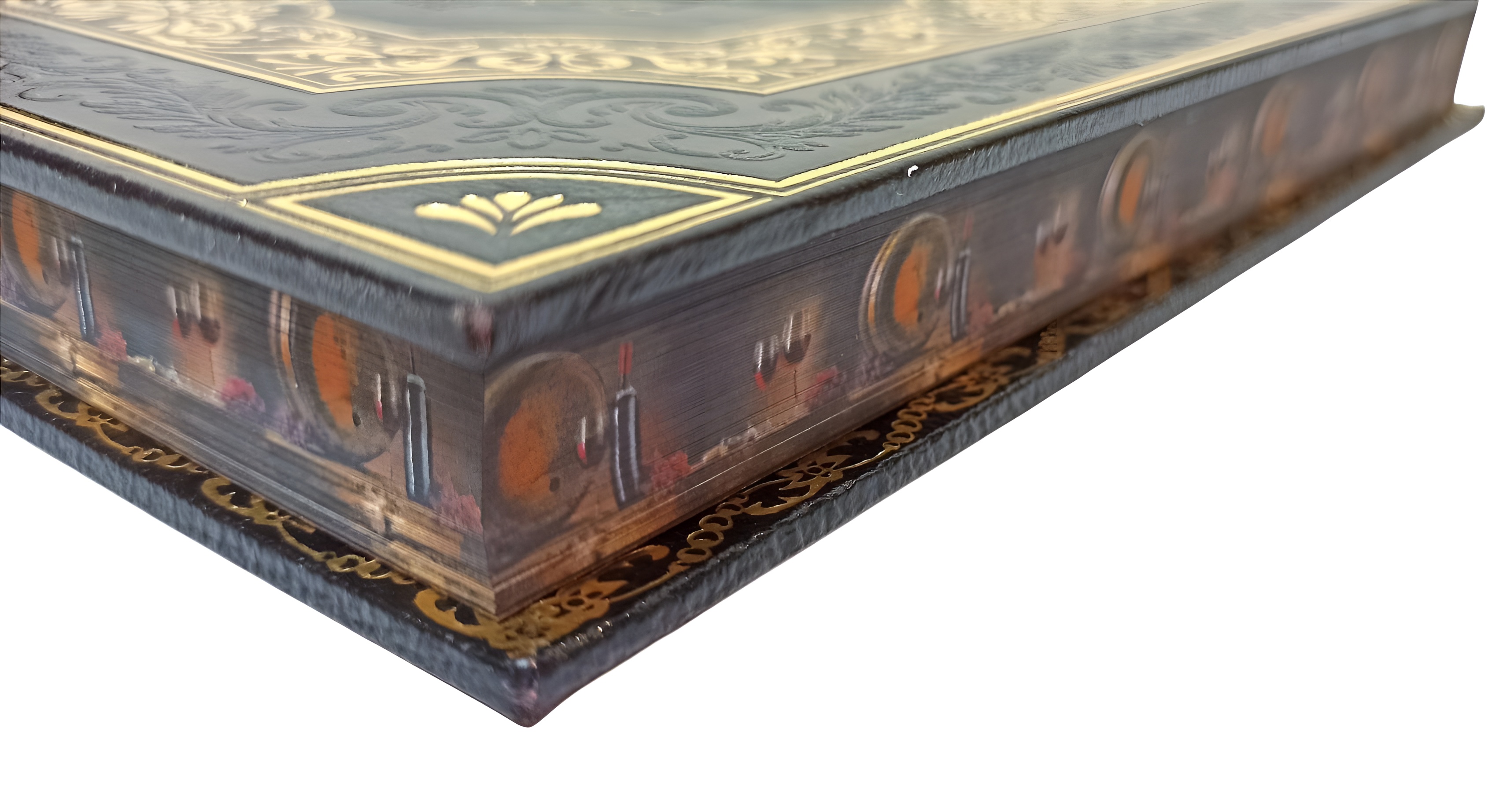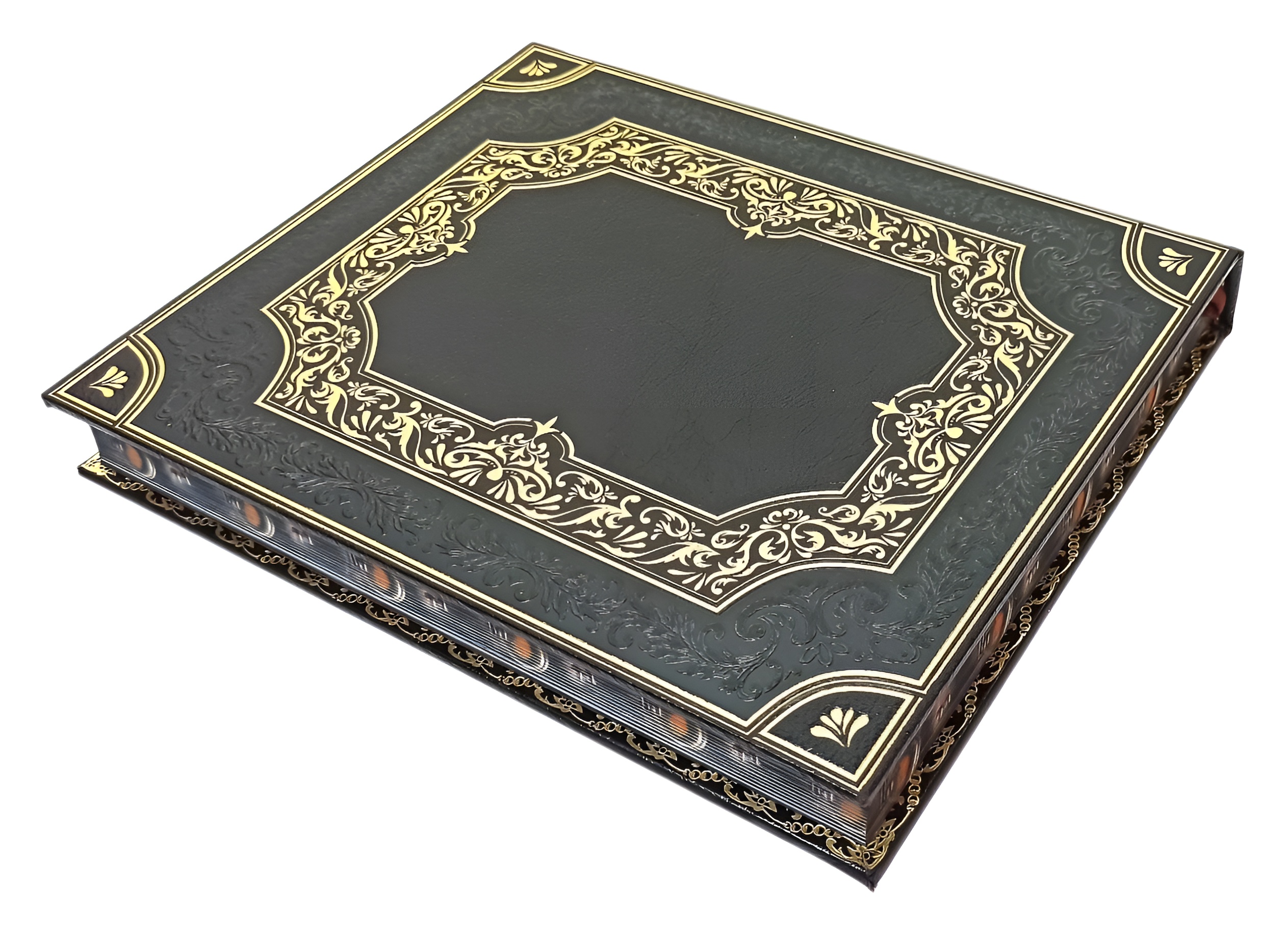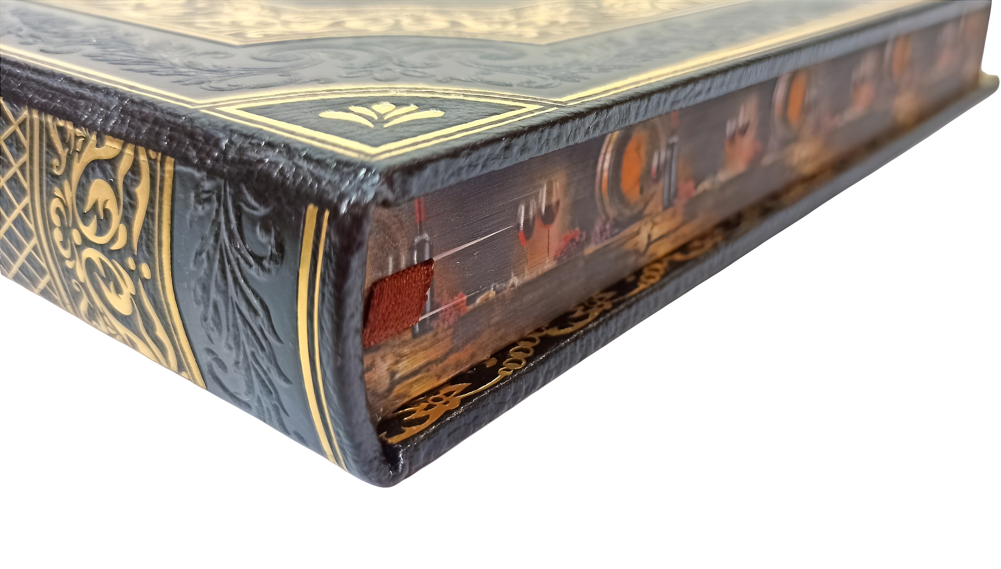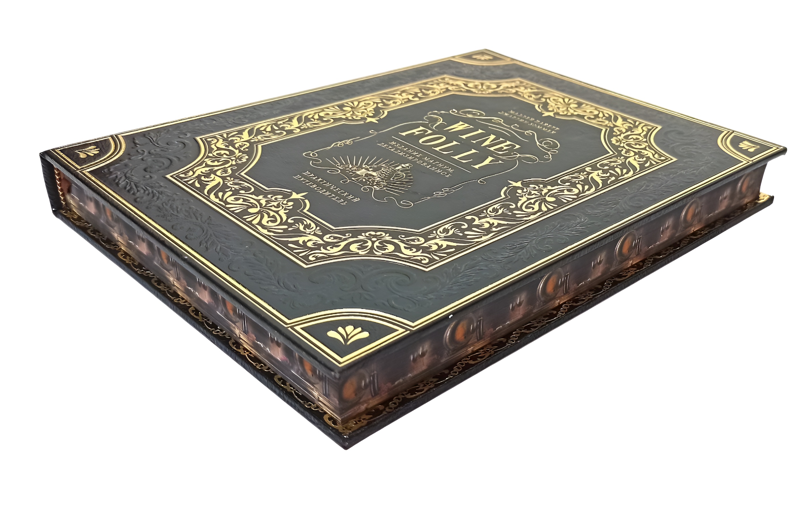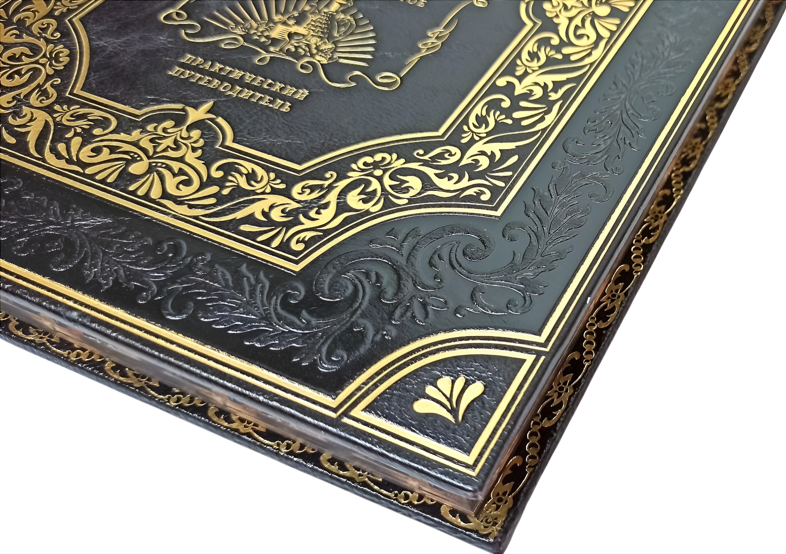 В оформлении переплета применяется сочетание блинтового и золотого тиснения, выполненных на высококачественной натуральной коже.