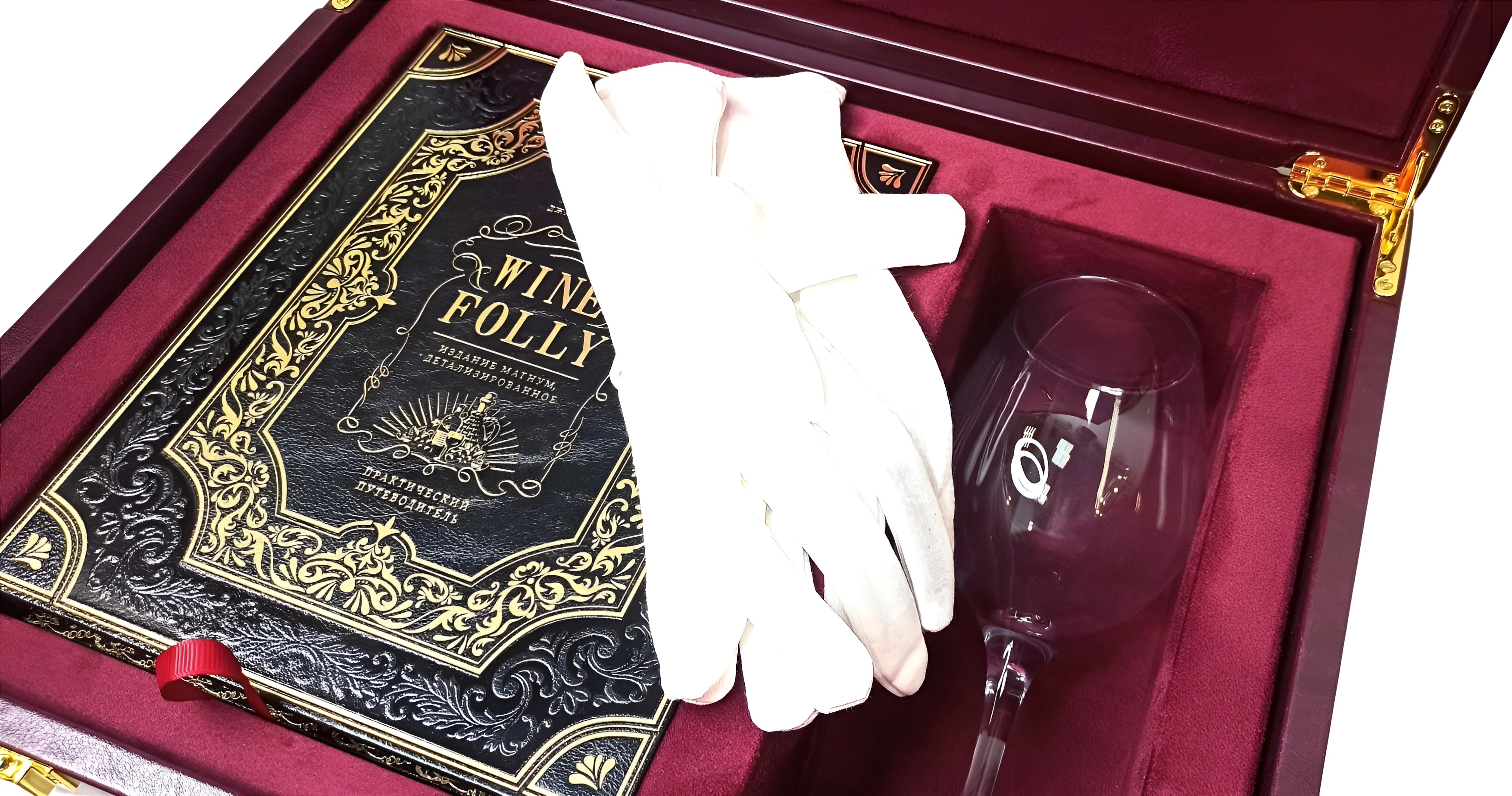 Подарочный набор включает в себя путеводитель по вину в кожаном переплете «Wine Folly: