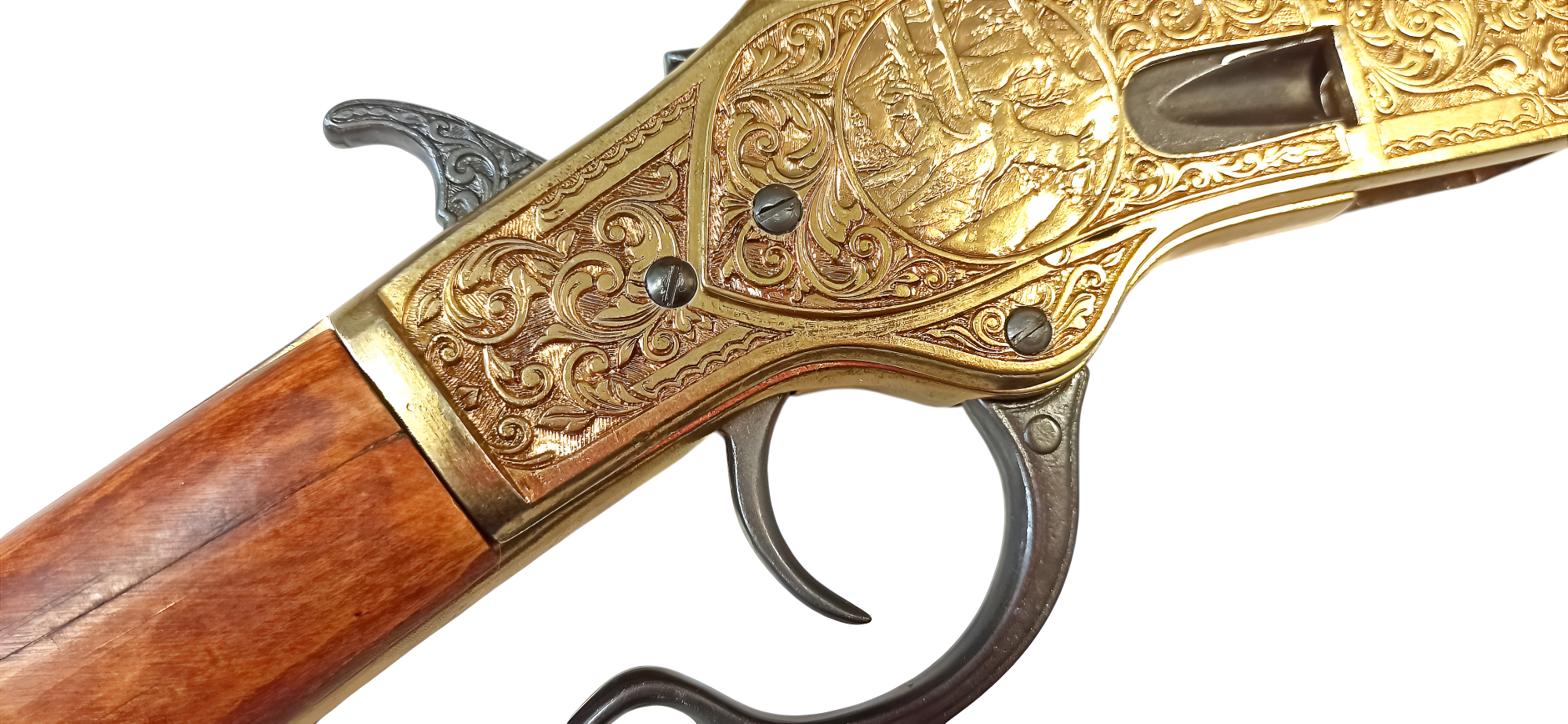 В изготовлении макета использован металлический сплав, латунь (для ствольной коробки) и натуральное дерево (для ложа и приклада). На ствольной коробке выполнена гравировка, изображающая охотника с ружьем, в окружении красивого цветочного узора. Действующий ударно-спусковой механизм позволяет выполнить взведение и нажать на курок.