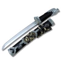 Танто "Черный Дракон" с рукоятью обтянутой кожей, имитирующей чешую дракона (змеиную кожу). Касира и цуба сделана в виде японского дракона. Лезвие изготовлено из нержавеющей стали марки 420С (25 HRC) с высокотехнологичной обработкой (полировкой) и не заточено. Деревянные лакированные ножны черно-белого цвета с сагео черно-желтого цвета. В центре ножн металлическая вставка с драконами и плетением. Металлические кодзири и коигути также украшены драконами.