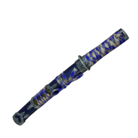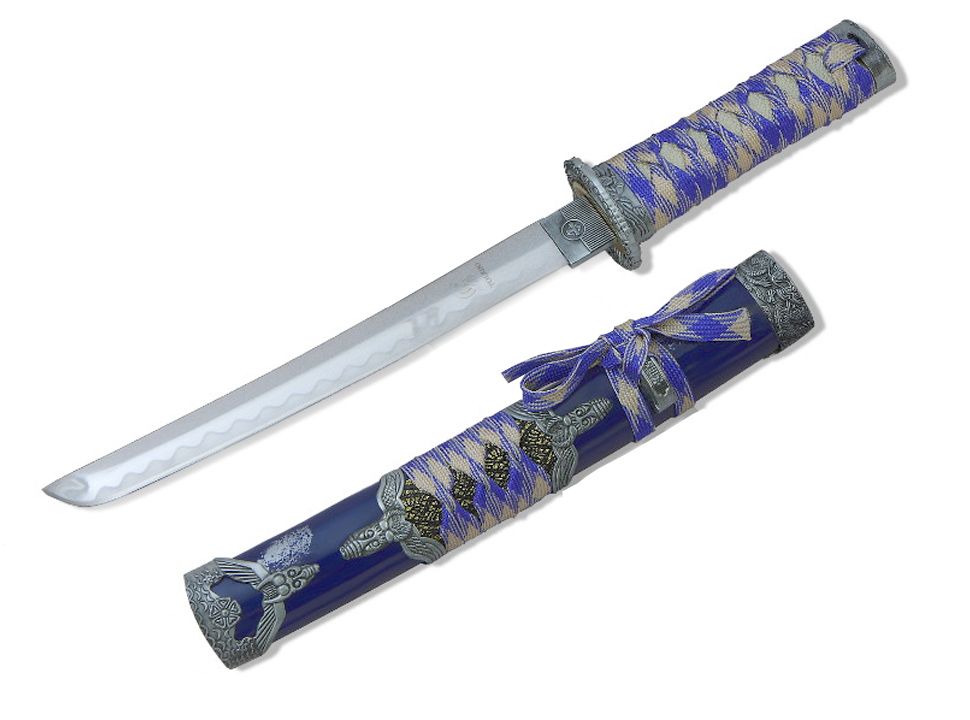 Танто с ножнами и рукоятью серебристого-синего цвета. На касире изображен воин, а на фути японские мотивы. Цуба в виде дракона. Цука оклеена материалом, имитирующим кожу ската и обмотана цука-ито из хлопка. Лезвие изготовлено из нержавеющей стали марки 420С (25 HRC) с высокотехнологичной обработкой (полировкой) и не заточено. Деревянные лакированные ножны (сая) серебристо-синего цвета с сагео сине-желтого цвета. В центре ножн металлическая вставка с драконами и плетением. Металлические кодзири и коигути также украшены драконами.