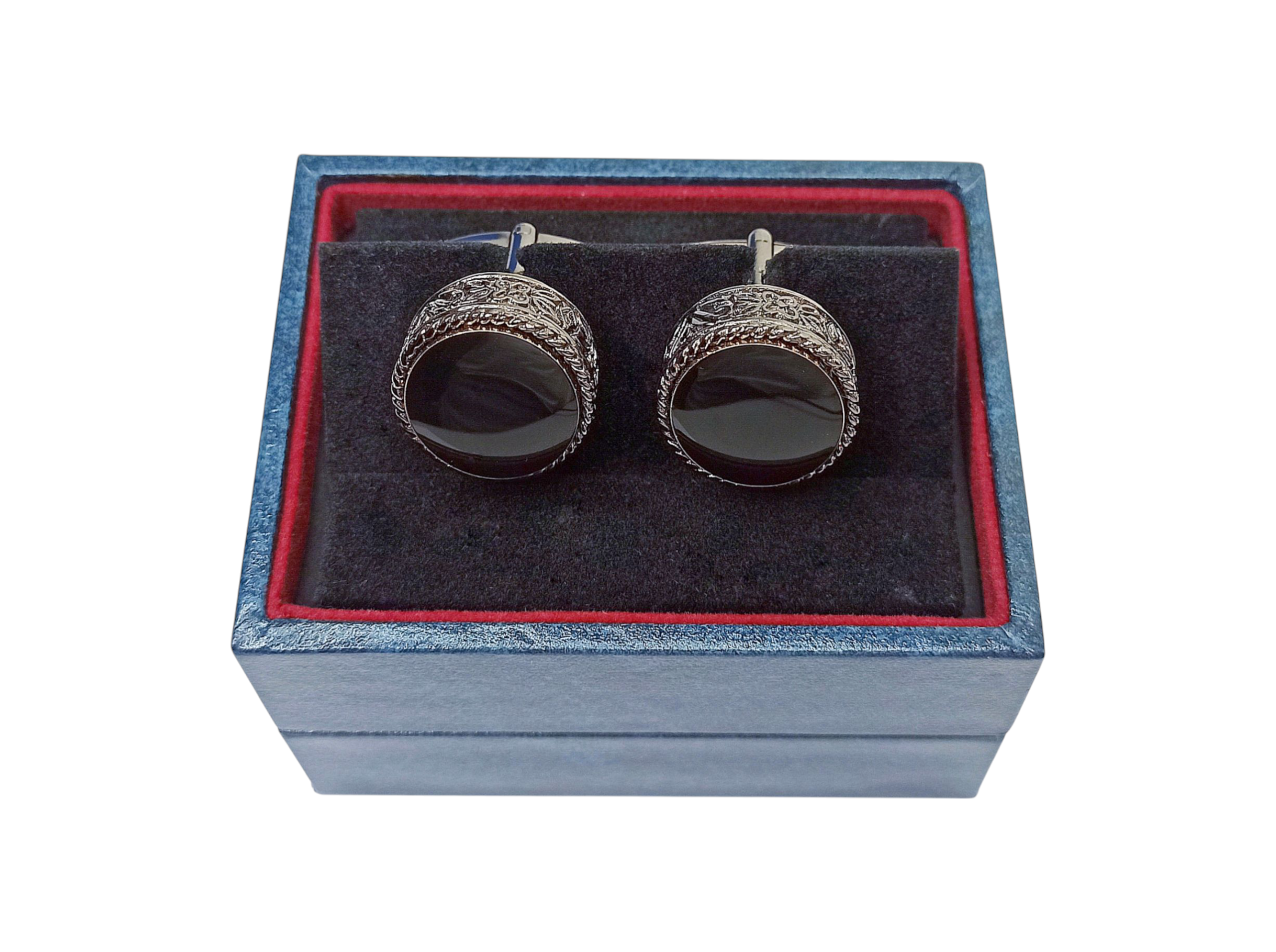 Запонки выполнены из ювелирного сплава со вставкой из черного агата.