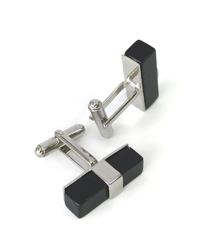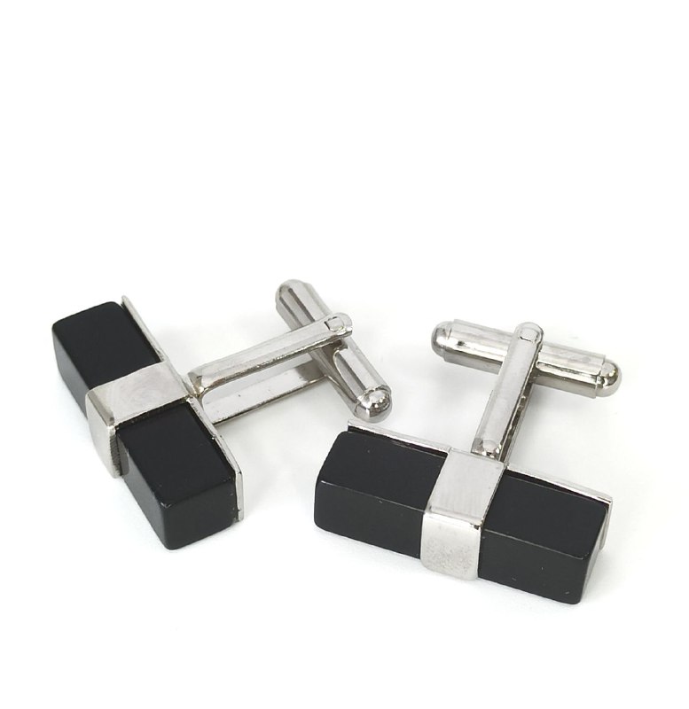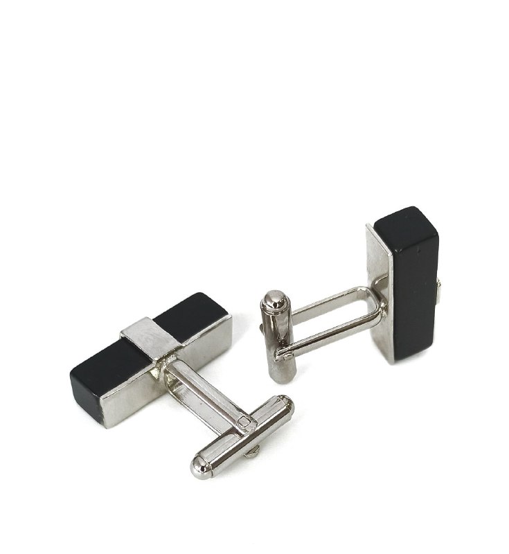 Запонки выполнены из ювелирного сплава со вставкой, имитирующей черный агат.