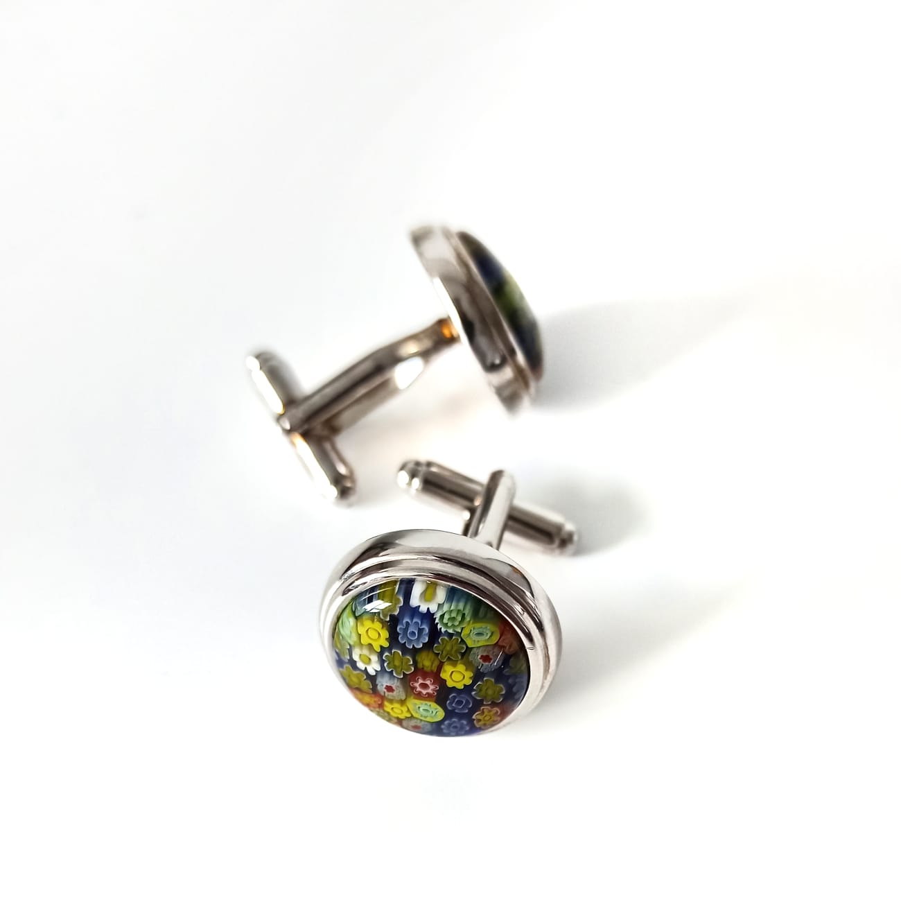 Запонки выполнены из нержавеющей стали со вставкой из Муранского стекла.