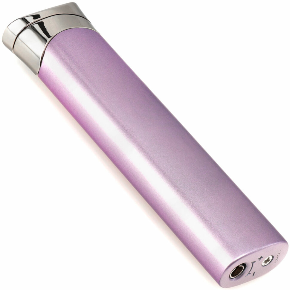 Тонкая элегантная зажигалка с кнопкой для пьезоподжига и регулятором подачи газа.