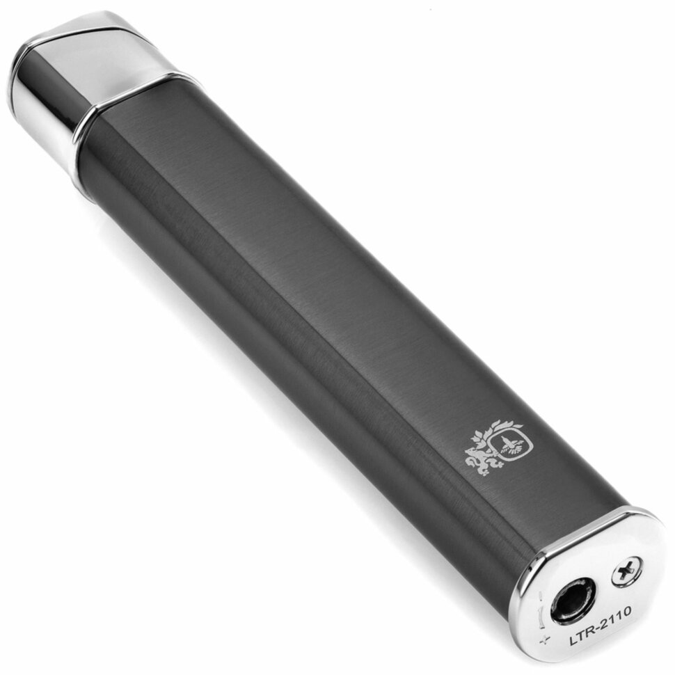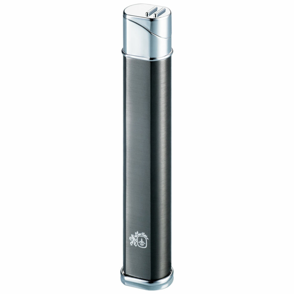 Зажигалка газовая Colibri Miata Satin Silver & Polished Silver с обычным пламенем сделана из металла и покрыта лаком.
