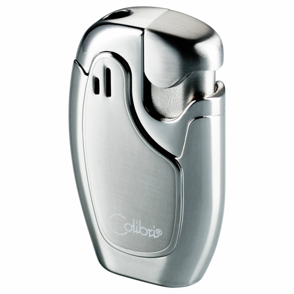 Зажигалка газовая Colibri Ramses Satin Silver & Polished Silver с обычным пламенем сделана из металла и покрыта лаком.