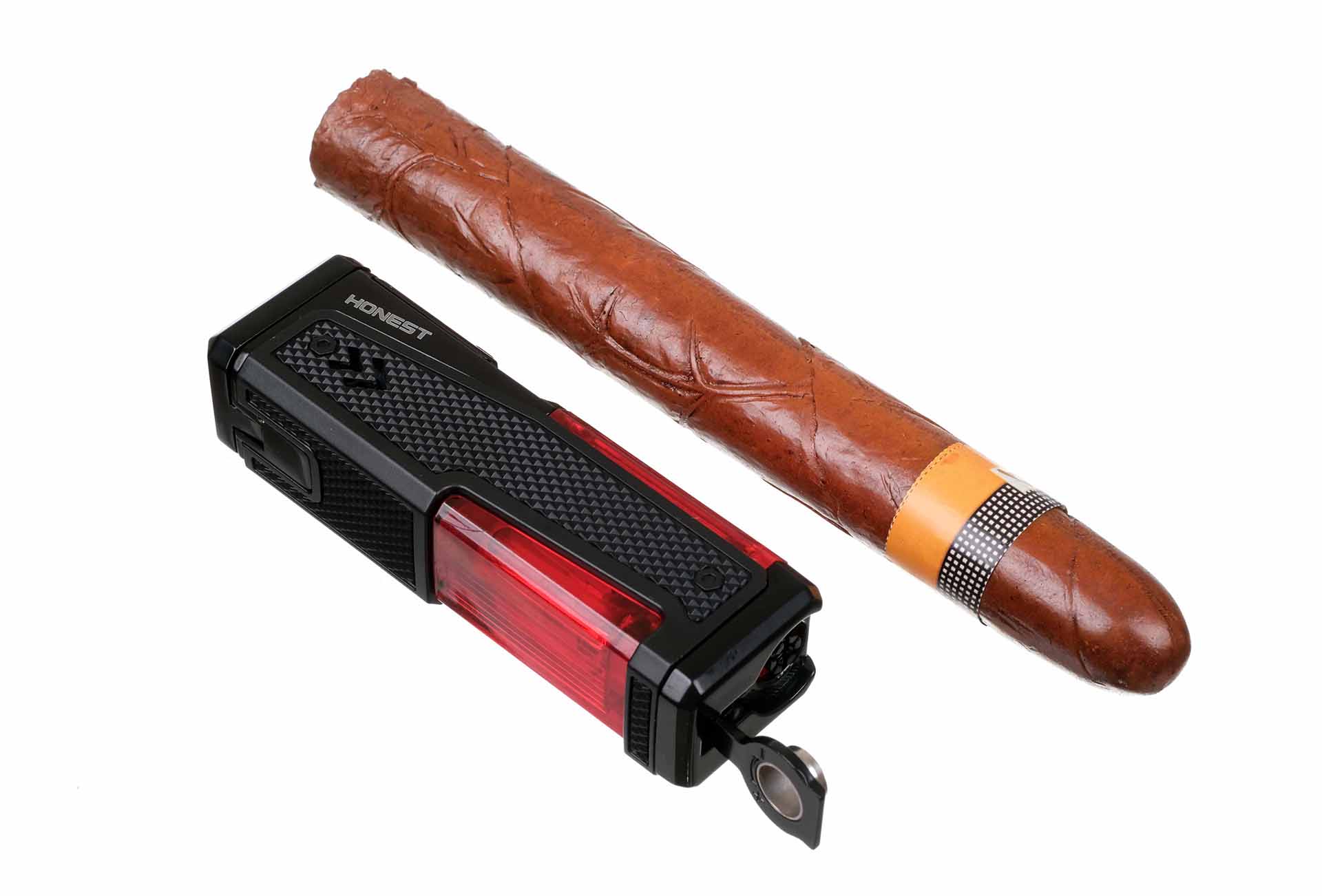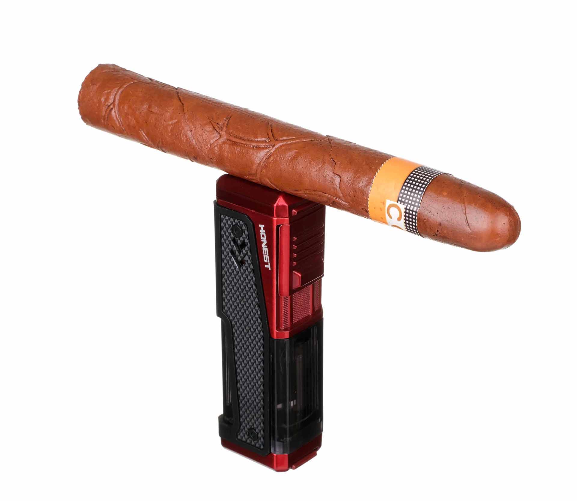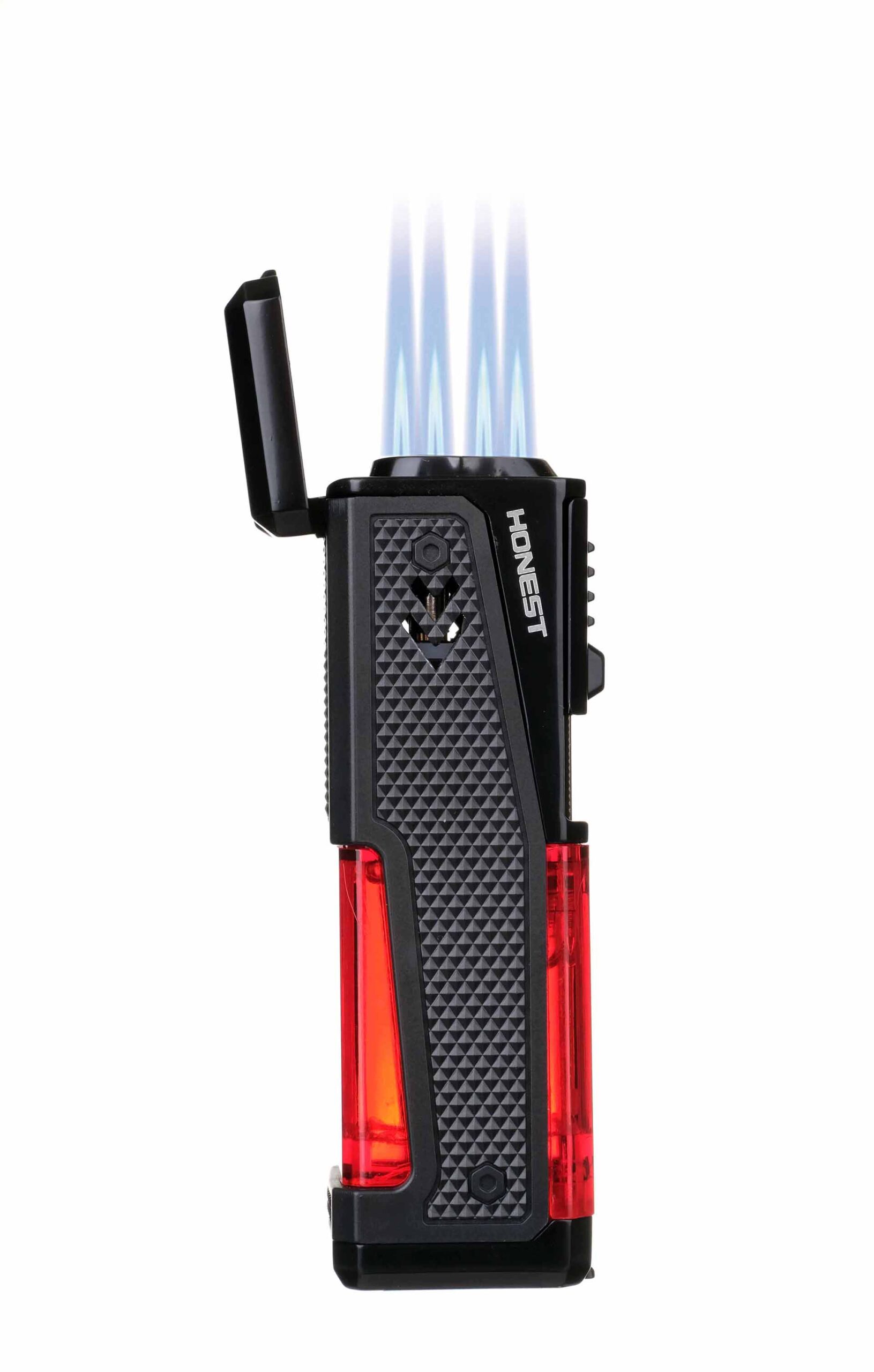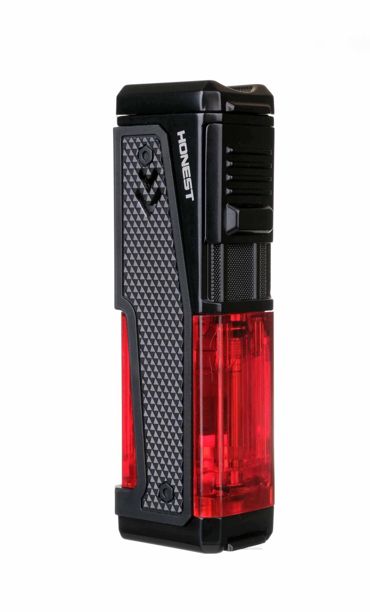 Зажигалка сигарная Honest, четверное пламя, с пробойником и сигарным ложементом, черная