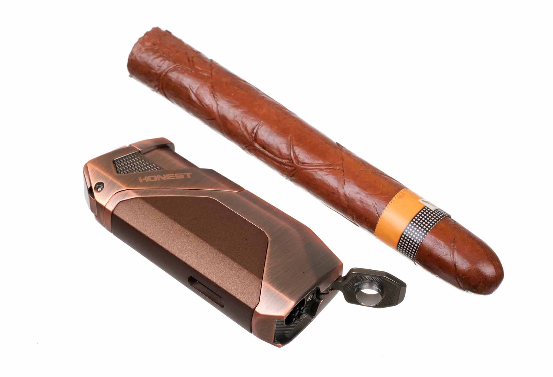 Зажигалка сигарная Honest, двойное пламя, с пробойником, бронза