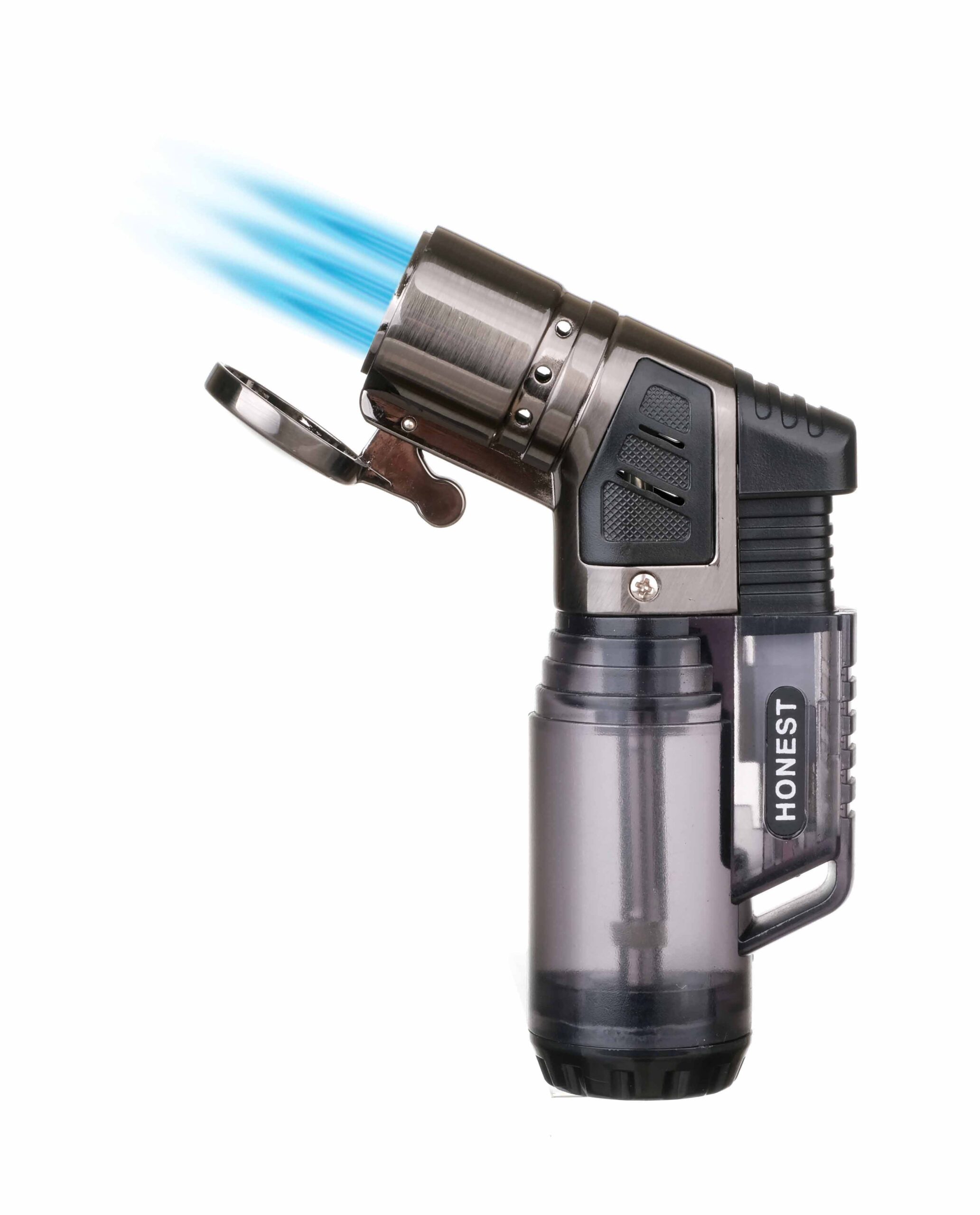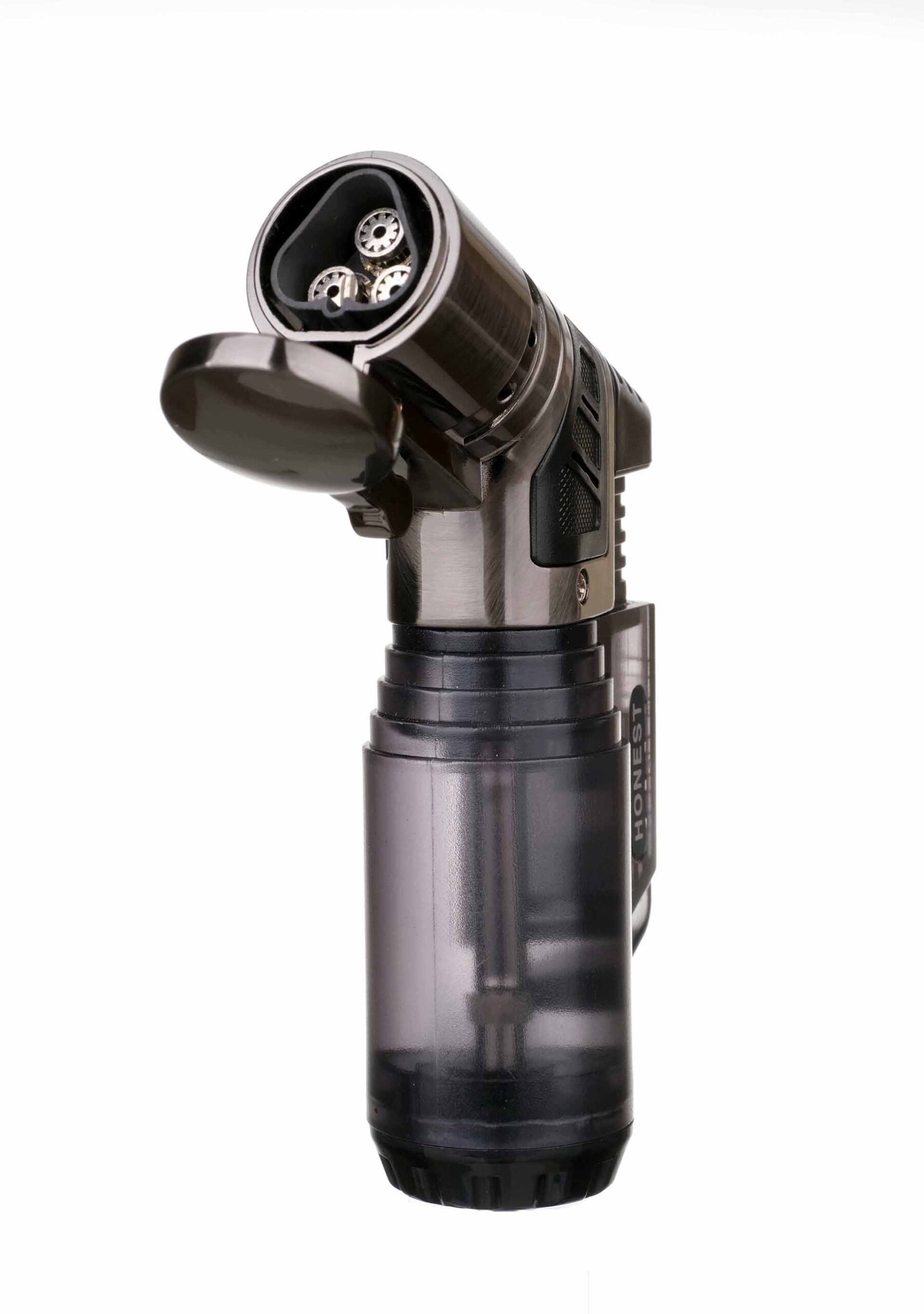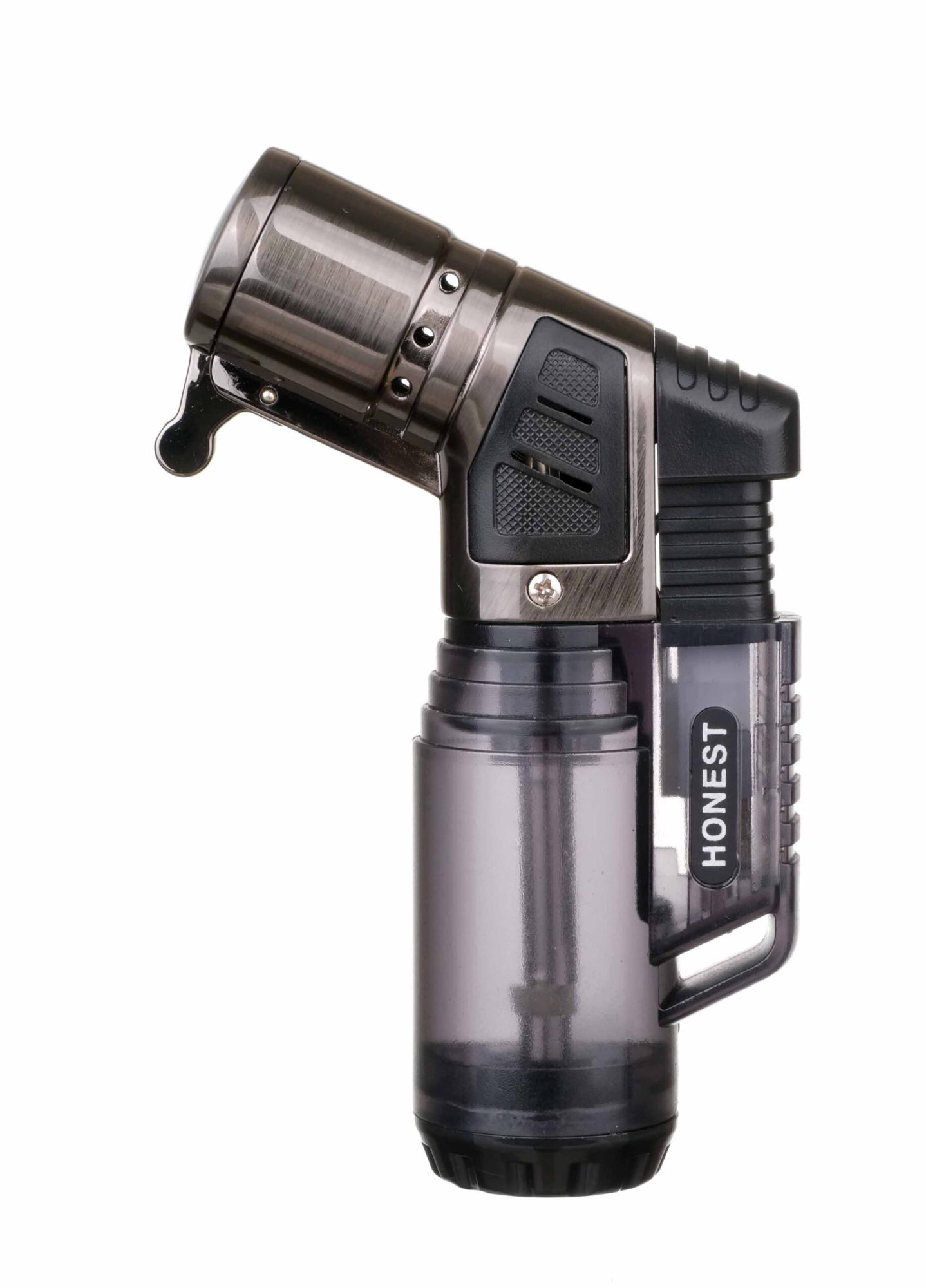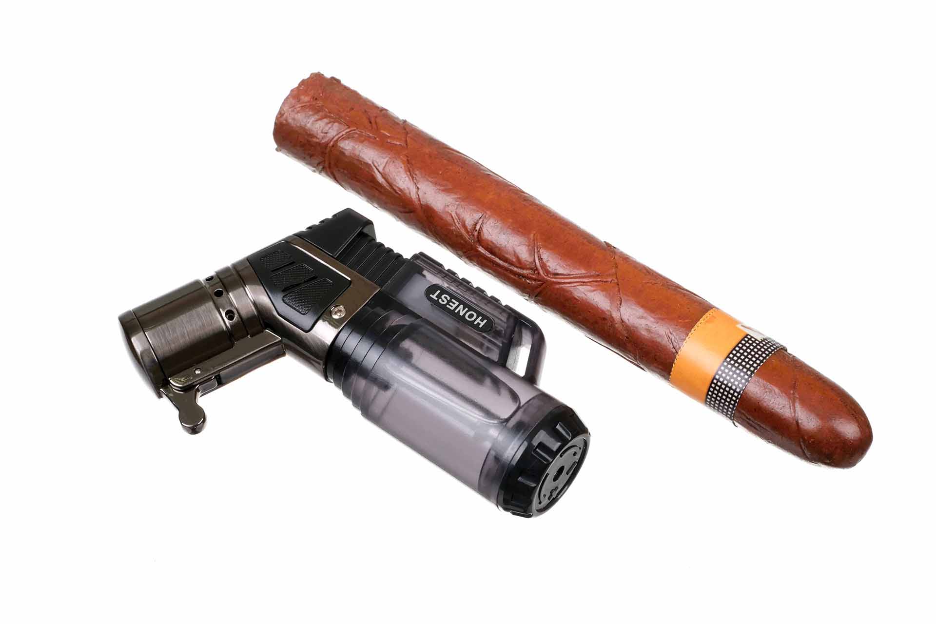 Сигарная газовая зажигалка с мощным тройным турбо-пламенем. Корпус выполнен из металла и полупрозрачного пластика, позволяющего контролировать уровень газа внутри и обеспечивающего удобный хват. Увеличенные вентиляционные отверстия по бокам обеспечивают более стабильное пламя даже при сильном ветре. В комплекте подарочная упаковка и инструкция по эксплуатации.