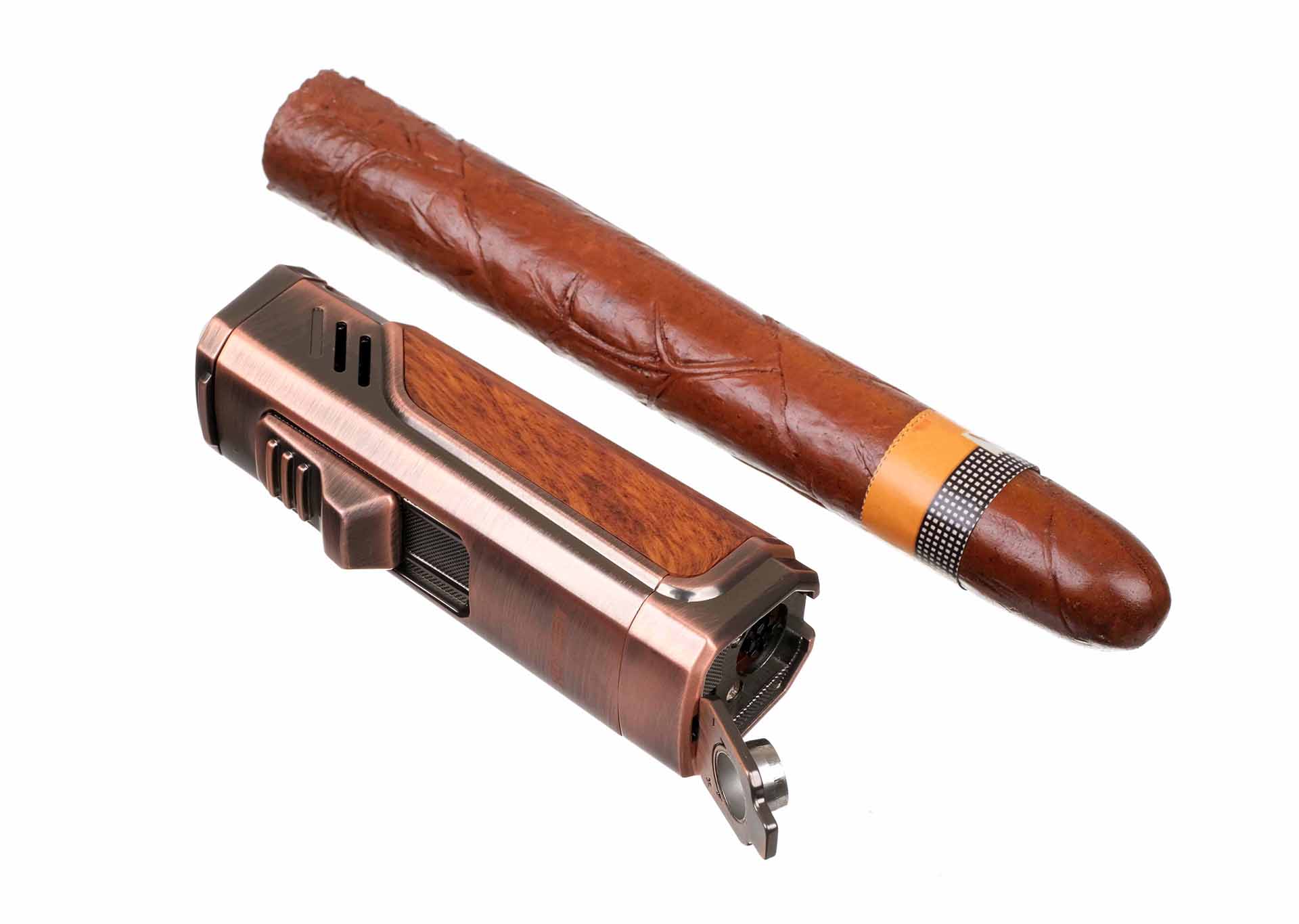 Зажигалка сигарная Honest, тройное пламя, с пробойником, бронза