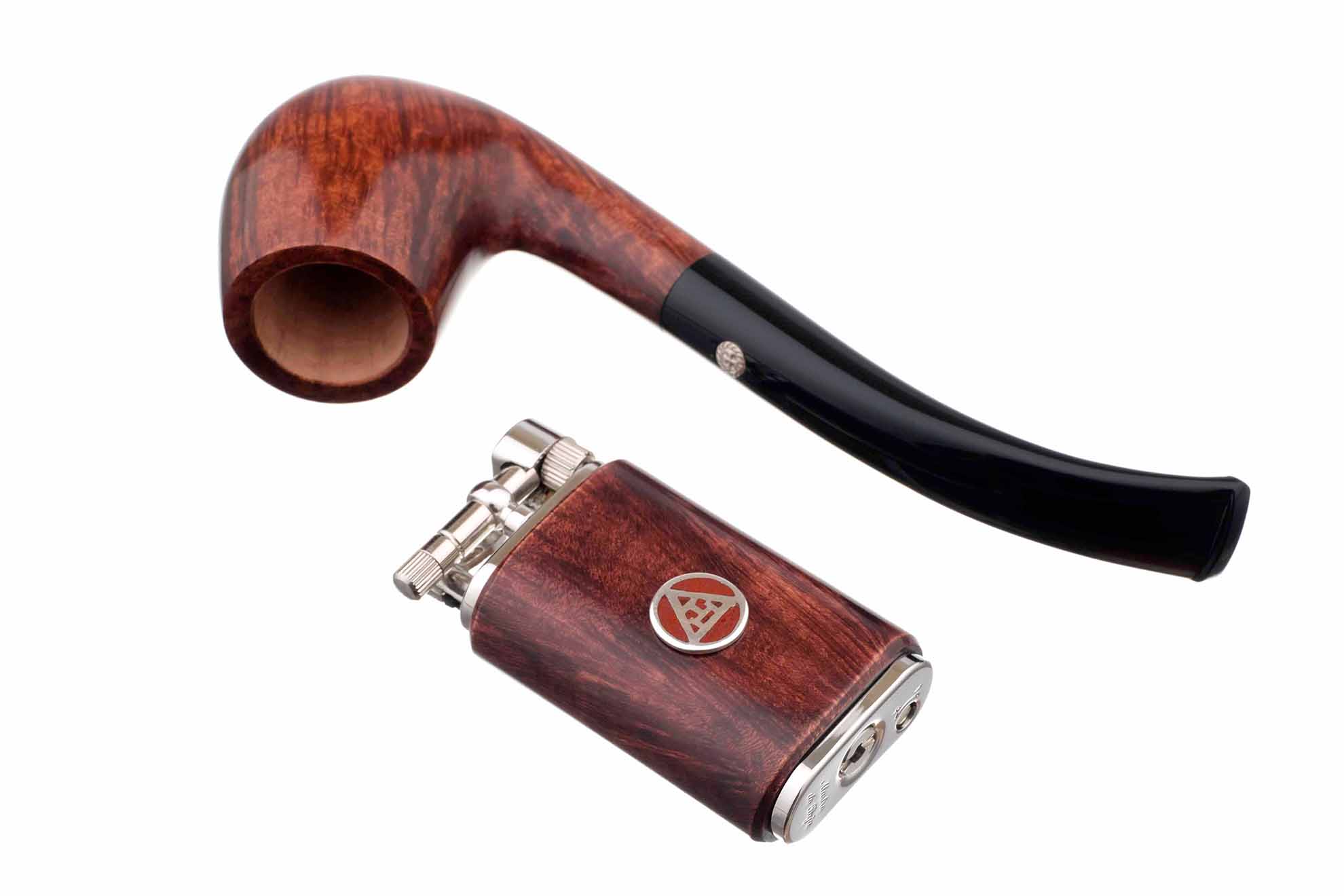 Трубочная газовая зажигалка с надежным кремневым механизмом поджига.
