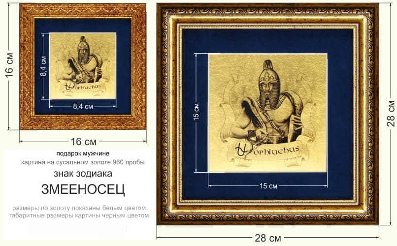 Картина на сусальном золоте «Знак Зодиака Змееносец» размером 84х84 мм (по золоту)