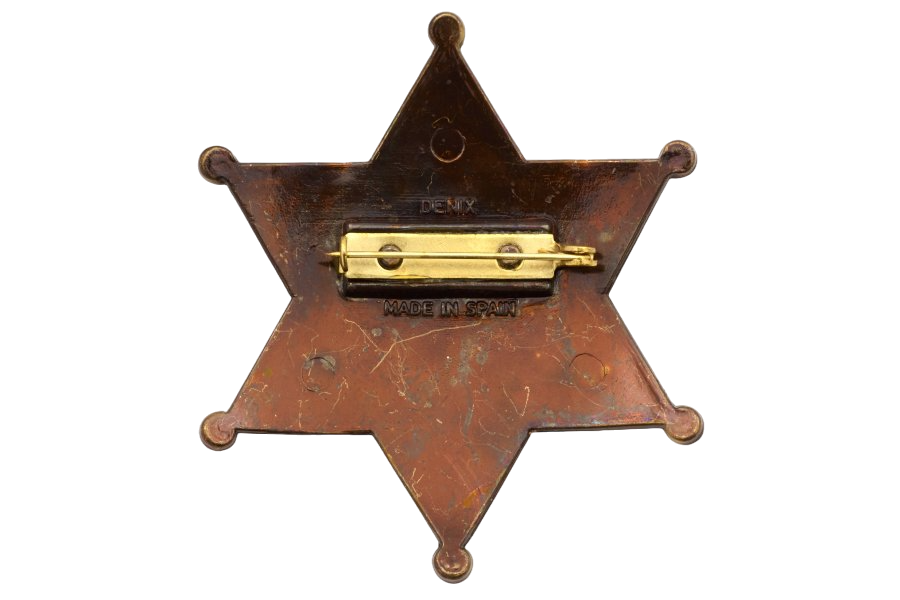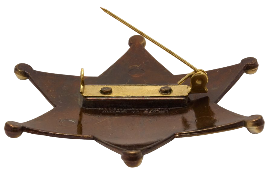 Копия шестиконечной звезды шерифа из металла, с булавкой для крепления на одежду.
